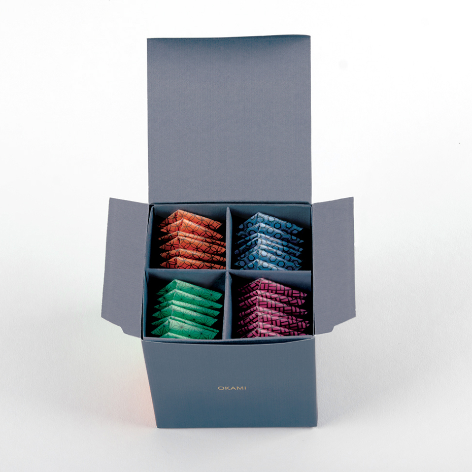 Overview: Okami is a green tea company that boasts its upscale selection of authentic green tea leaves. The name “Okami”, which derives from the story behind the founding of the company, means “landlady” in Japanese. This assorted tea gift box was purposely designed to promote the awareness of varieties of Japanese teas targeting young audiences while making it more accessible in their high-paced busy life.